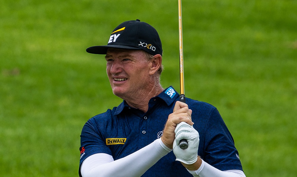 When darkness brought an end to an incomplete second round of the NTT Data Men’s Pro-Am, the 56-year-old South African settled into a glass of red wine having played his way to just five shots off the lead held by MJ Daffue. Daffue climbed to 13-under-par overall with his sublime 64 on the Outeniqua course.